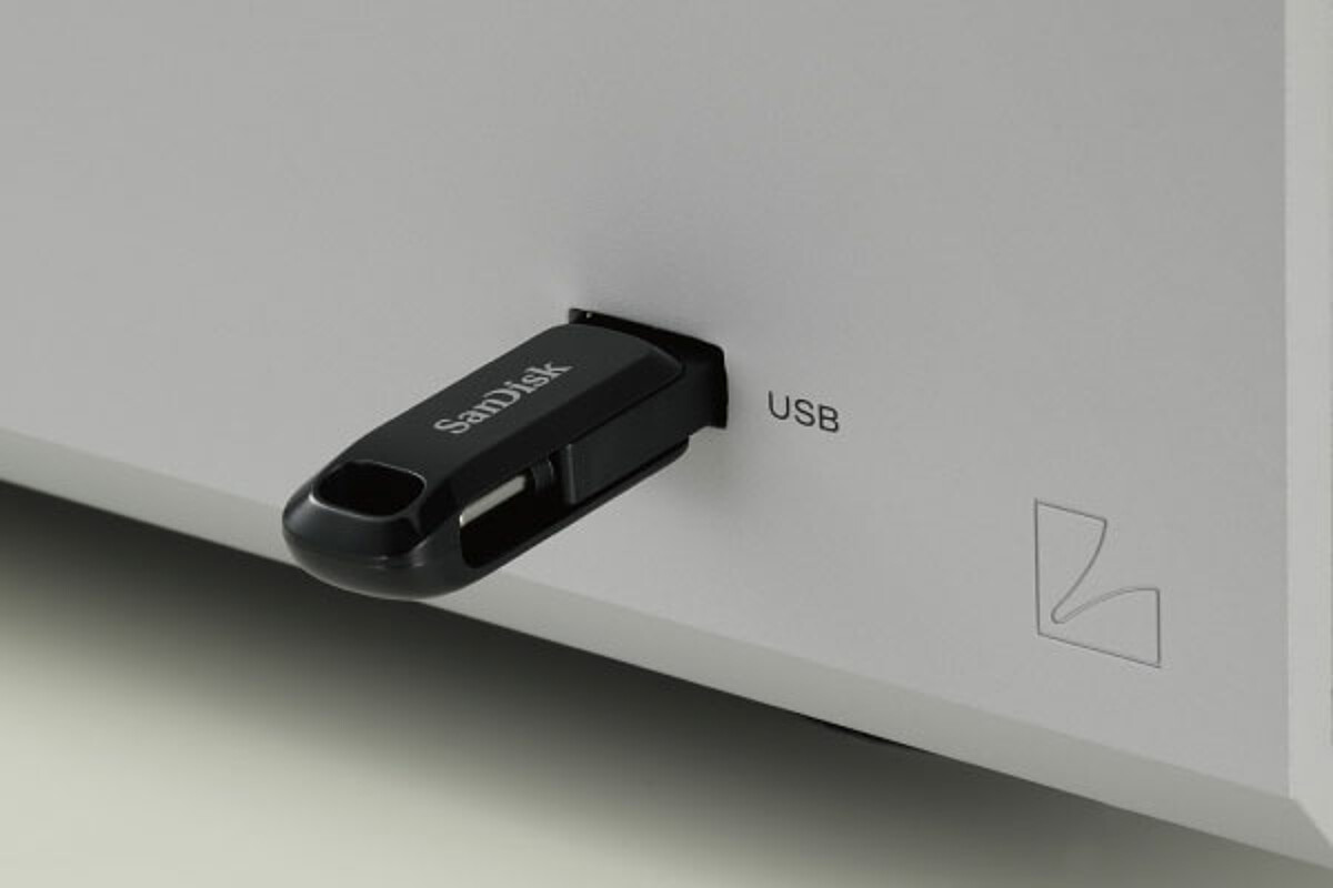 Der NT-07 ist mit dem OpenHome-Standard kompatibel und kann Daten von Klangquellen, die auf einem dedizierten Musikserver oder einem Network Attached Storage (NAS) gespeichert sind, in höchster Qualität wiedergeben. Wenn Sie sich für ein NAS mit Rauschunterdrückung und verbesserter linearer Stromversorgung entscheiden, wie z.B. das DELA von Melco Syncrets, das als Audiogerät entwickelt wurde, oder das fidata von I-O DATA Equipment, können Sie eine noch höhere Qualität und Komfort beim Zugriff auf hochauflösende Audiodaten erreichen. Darüber hinaus wurde der NT-07 mit USB-Anschlüssen auf der Vorder- und Rückseite ausgestattet (exklusive Nutzung der beiden Anschlüsse), die es Ihnen ermöglichen, USB-Geräte mit Audiodaten anzuschließen, ohne eine Netzwerkumgebung aufbauen zu müssen.