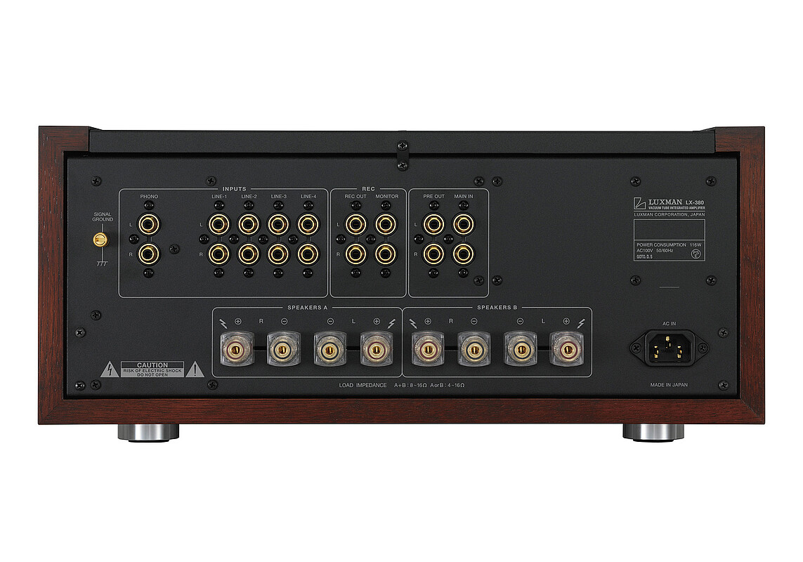 Der LX-380 repräsentiert schon die zwölfte Generation der Klassik 38er-Serie, die 1963 mit dem SQ-38 eingeführt wurde. Der elektronisch gesteuerte Hochspannungsabschwächer LECUA ist hier zum ersten Mal in einem Röhrenverstärker in traditioneller Bauweise integriert. In der Endstufe machen die Mullard-Treiberstufe und die im Gegentakt geschalteten 6L6GC-Ausgangsröhren ihrem Ruf für filigranen, weichen Klang alle Ehre. Die exzellente Halbleiterschaltung und das Regelsystem, das die erste Stufe dieses großartigen Geräts bildet, sorgen für hohe Leistung und Langzeitstabilität. Modernste Technologie verbindet sich auf exquisite Weise mit traditionellem Know-how und eine musikalische, satte Röhrenleistung macht den Reiz dieses röhrenbestückten Hybrid-Vollverstärkers aus.
