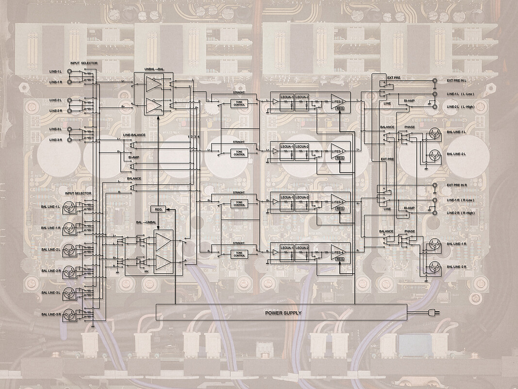 ODNF, ein einzigartiges Rückkopplungssystem, das als epochale Verstärkerinnovation ausgereift ist und die natürliche Klangqualität eines nicht mit Rückkopplung ausgestatteten Verstärkers bietet, indem es nur die verzerrten Komponenten des verstärkten Signals zurückführt. Im Jahr 2021, bei der Entwicklung unseres Flaggschiff-Endverstärkers M-10X, lieferten wir LIFES als neue Verstärker-Feedback-Engine, um eine realistischere, frischere und reichhaltigere Musikalität und eine überwältigende Audio-Performance zu erreichen, und jetzt ist es das Herzstück unseres Flaggschiff-Regelverstärkers C-10X, das erste Modell-Upgrade seit 10 Jahren. Für die Lautstärkeregelung haben wir unseren elektronisch gesteuerten Abschwächer LECUA weiterentwickelt, der eine Reihe von in der Schaltung angeordneten Festwiderständen steuert. LECUA-EX, das die Bewegungsimpulse eines Drehgebers völlig losgelöst vom Audiosignalweg liest, unterdrückt gründlich eine Beeinträchtigung der Klangqualität und ermöglicht eine sanfte Lautstärkeregelung. Unsere LIFES-Vorverstärkerschaltung ist mit maßgeschneiderten Komponenten aufgebaut und direkt mit dem LECUA-EX-System verbunden, wobei die vier Einheiten in einer vollständig symmetrischen Konfiguration in völlig identischen Betriebszuständen angeordnet sind, um die ideale Struktur als Vorverstärker zu realisieren.