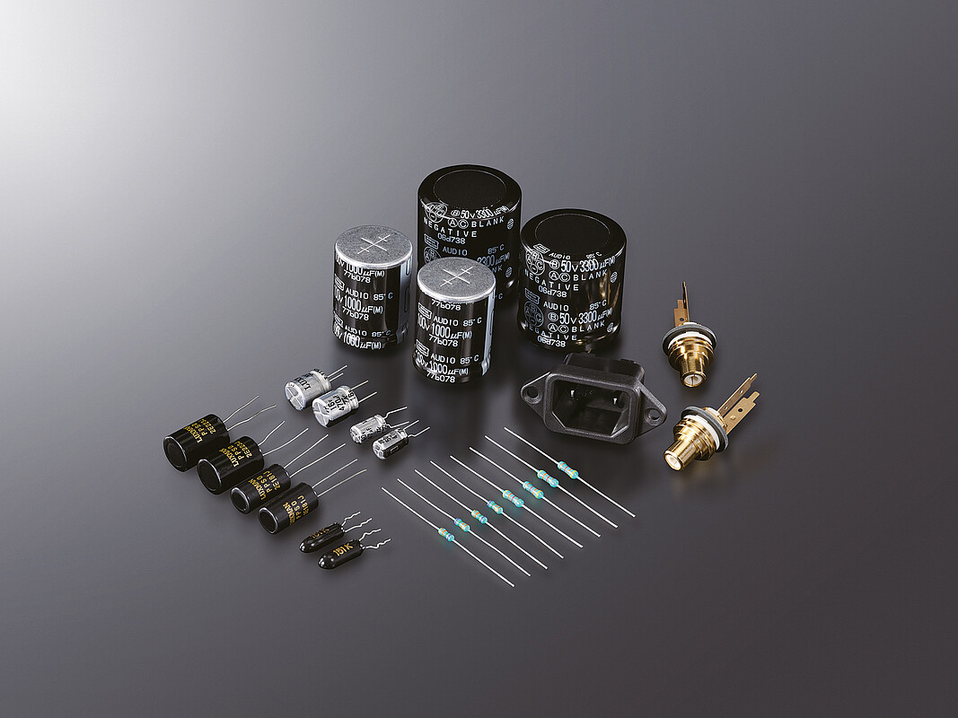 Für die Kondensatoren und Widerstände im Audiosignalpfad haben wir eine große Anzahl speziell entwickelter Komponenten verwendet, bei denen die Klangqualität im Vordergrund steht. Für die interne Verkabelung werden original OFC-Kabel verwendet. Die Eingangs- und Ausgangsbereiche auf der Rückseite sind mit robusten Cinch-Anschlüssen im 27-mm-Raster und hochwertigen Neutrik-XLR-Anschlüssen ausgestattet, um den hohen Standards des C-10X gerecht zu werden.